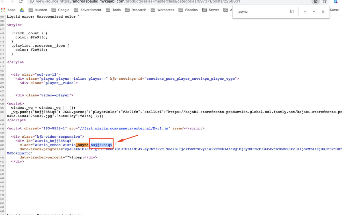 Zunächst gehst du auf der Seite wo das Video sich befindet in den Quellcode und suchst dann nach „_async“: