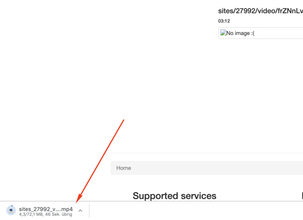 Manchmal geht es in einem neuen Fenster auf und die Linkendung ist „.bin“. Diese Endung änderst du in .mp4 um und klickst „Enter“. Das Video wird neugeladen und nun kannst du das Video mit der rechten Maustaste herunterladen im richtig Format.