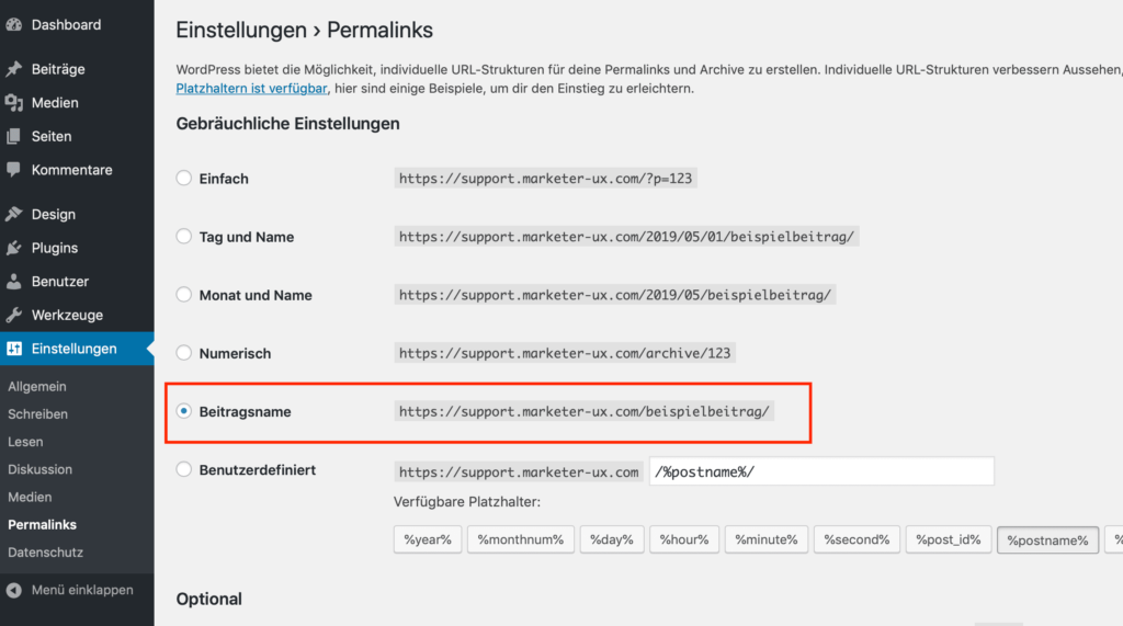 WordPress Permalinks admin am Mai 1, 2019 Bei frischen WP-Installationen solle n die Permalinks immer so eingestellt werden wie auf dem Bild: Kategorie: Wordpress Schlagwort: permalinks Beitrags-Navigation Vorherige: Vorheriger Beitrag: Contact Form 7 „Senden Button“ mittig platzierenWeiter: Nächster Beitrag: Alle unsere Rerefenzen Webflow Schreibe einen Kommentar Antworten abbrechenDeine E-Mail-Adresse wird nicht veröffentlicht. Erforderliche Felder sind mit * markiert.Kommentar Name * E-Mail * Website Meinen Namen, meine E-Mail-Adresse und meine Website in diesem Browser speichern, bis ich wieder kommentiere.